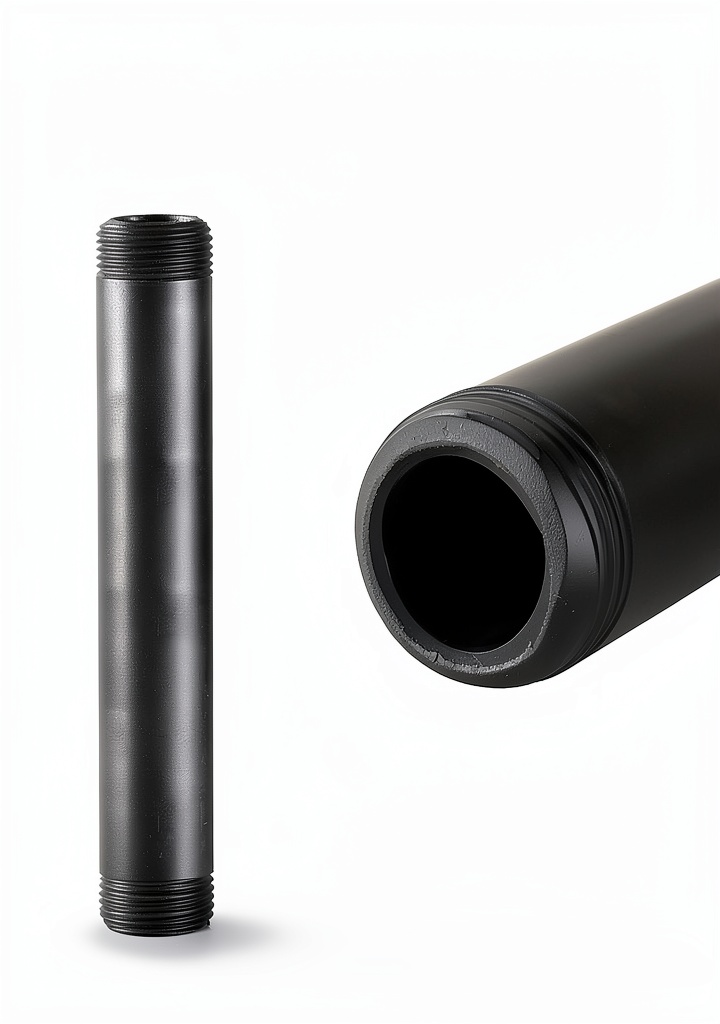 These nipples are constructed from malleable iron and alloy steel, providing strength and a black exterior finish that resists wear in various environments.